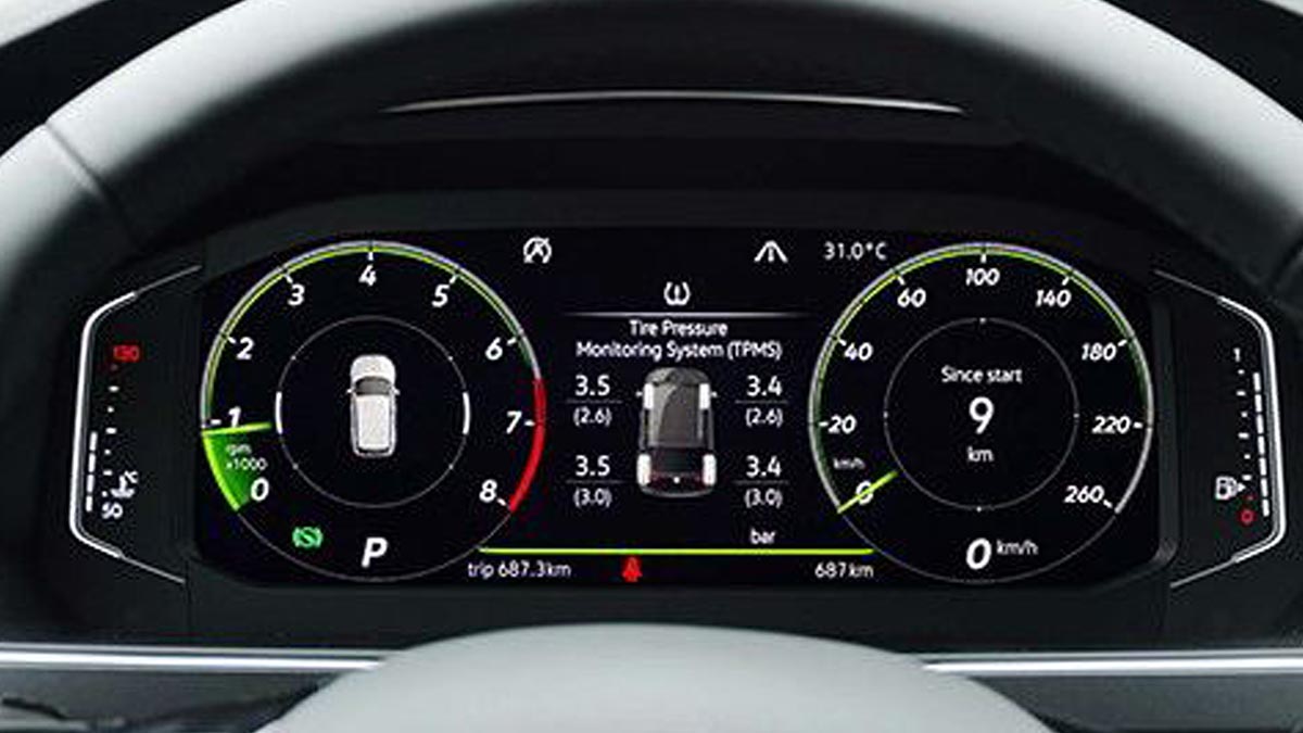 Hệ thống giám sát áp suất lốp Tire Pressure Monitoring System An tâm hơn trên mọi chuyến hành trình với hệ thống cảnh báo áp suất lốp hiển thị trên Đồng Hồ Trung Tâm