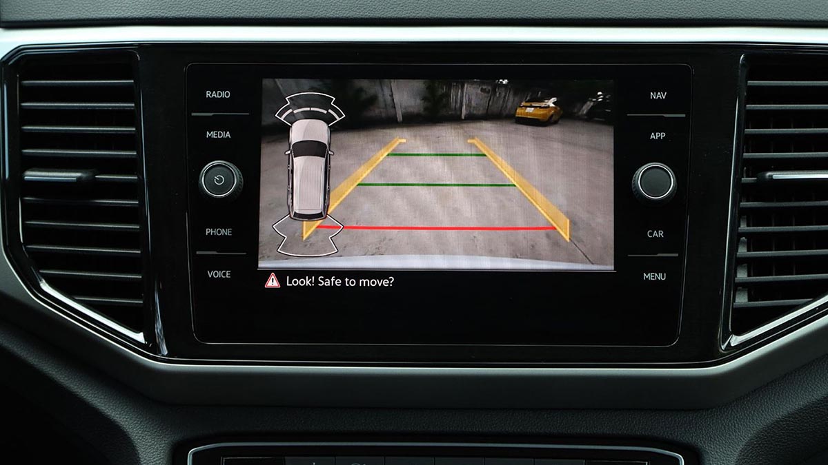Camera lùi góc rộng Đưa xe vào những chỗ đậu xe khó khăn nhất một cách nhanh chóng và dễ dàng. Các hướng dẫn hiển thị rõ ràng bằng vạch trên màn hình kết hợp âm thanh cảnh bá