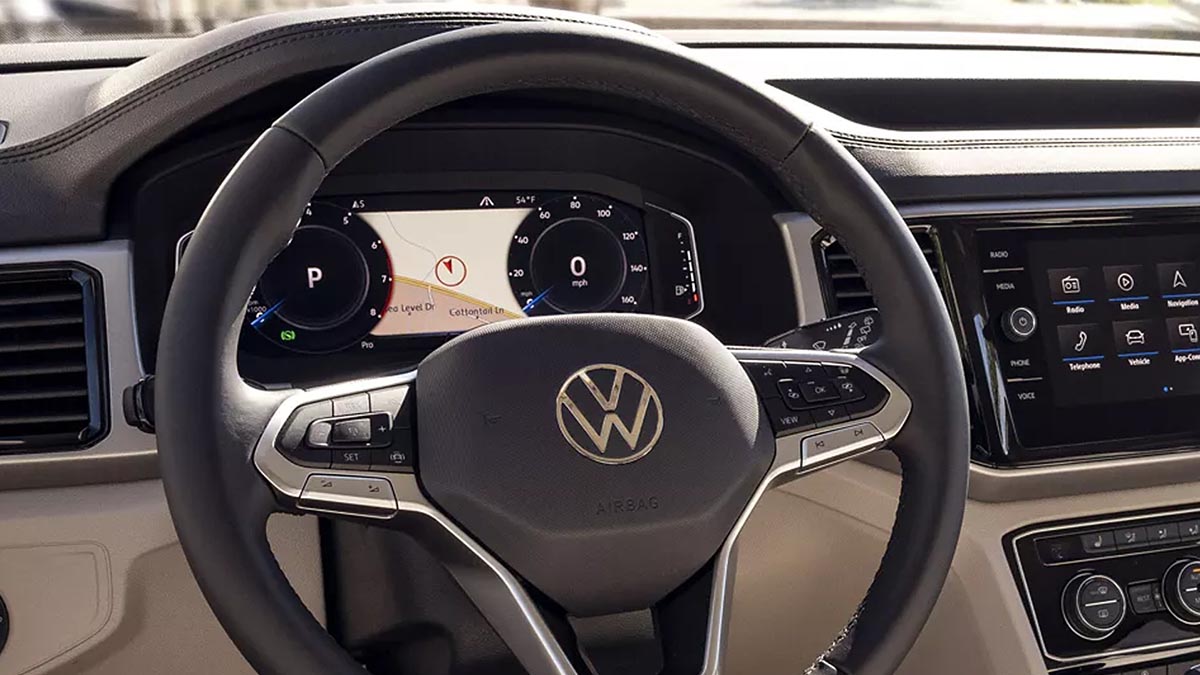 Đồng hồ trung tâm kỹ thuật số Digital Cockpit Hệ thống đồng hồ thông tin kỹ thuật số Volkswagen Digital Cockpit trang bị màn hình kỹ thuật số 12.3 inch. Thay vì cụm đồng hồ truyền thống, nhiều thông tin từ tốc độ, thời gian di chuyển đến các hệ thống hỗ trợ, tất cả đều có thể được hiển thị kỹ thuật số với độ phân giải cao.