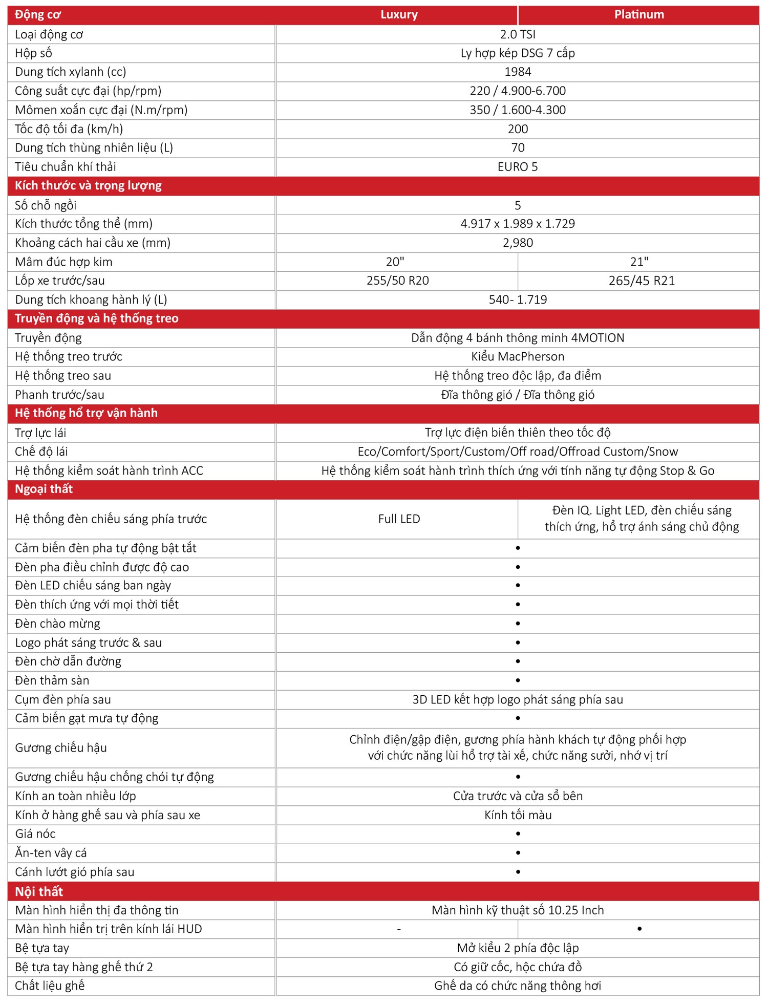 • Teramont X Platinum: 2.168.000.000 VNĐ